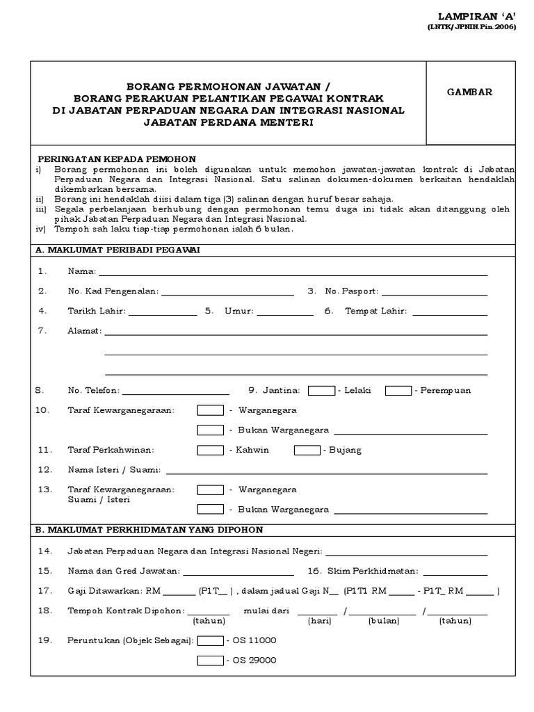Related : Borang Permohonan Pegawai Kontrak Kastam / Borang permohonan jawatan pegawai kontrak (kontrak untuk perkhidmatan)..