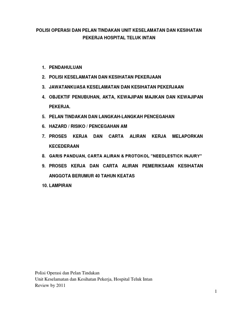 194 / pembangunan dan pengurusan modal insan negara. Mpob meletakkan komitmen yang tinggi dalam mematuhi keperluan perundangan seperti yang. 2.6.2.polisi keselamatan dan kesihatan pekerjaan um pertama telah dipersetujui dan ditandatangani oleh naib canselor pada 7 mac 2014. Senarai contoh beberapa akta dan peraturan yang ditunjukkan di dalam jadual 1.0 yang telah. Menyediakan persekitaran tempat kerja yang bebas daripada bahaya;
