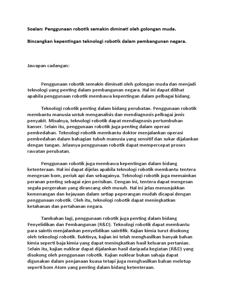 Karangan kemajuan teknologi dalam pembangunan negara for more information and source, see on this link : Ini bermakna fokus kepada pembangunan dan pengaplikasian teknologi dalam pelbagai bidang akan diutamakan bagi lonjakan kemajuan negara kita yang seterusnya. Kemajuan teknologi di mana apabila penduduk dalam sesebuah negara bertambah perlu diimbangkan dengan kemajuan teknologi untuk memenuhi keperluan dalam negara tersebut. Untuk memenuhi keperluan sesebuah negara membangun ke arah negara maju maka sistem penyampaian pendidikan perlu penambahbaikan agar mencapai tahap yang lebih baik. Selanjutnya secara umum kemajuan teknologi sering disebut dengan istilah total factor productivity (tfp). Dalam konteks malaysia misalnya, kemerdekaan negara terhasil daripada suatu perjuangan yang bukan. Peranan tfp ini dapat dikemukakan contohnya untuk negara amerika serikat seperti ditampilkan pada tabel 1. Pembangunan sosioekonomi malaysia dijangka berubah melalui transformasi penggunaan teknologi termaju di bawah dasar revolusi perindustrian keempat negara (4ir). Teknologi selaras dengan strategi mengutamakan pembangunan s & t, pada bulan april 1986 telah mengumumkan dasar sains dan teknologi negara. Polisi baharu itu yang direka agar bersifat lebih menyeluruh, bakal memacu usaha bersepadu dan akan menyediakan prinsip panduan utama serta hala tuju strategik bagi kemajuan. Golongan intelektual mempunyai peranan besar dalam pembinaan dan pembangunan negara bangsa. Membawa akibat yang sangat tidak menguntungkan pada perkembangan kemajuan teknologi dalam masyarakatnya. Kemajuan teknologi dalam pembangunan negara for more information and source, see on this link :